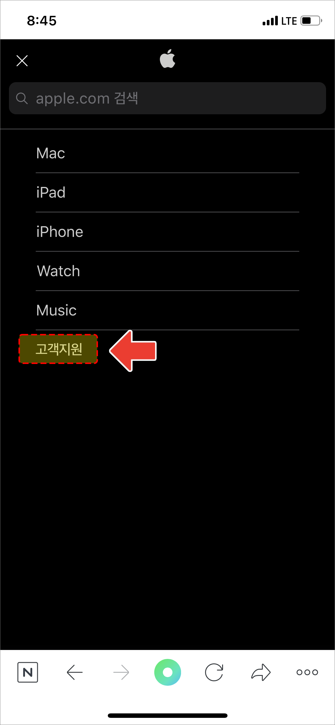 현재 서비스하고 있는 메뉴와 함께 맨 아래 [고객지원] 탭을 클릭하게 되면 애플 A/S 페이지로 넘어가는데 이때 여러분들이 필요한 리퍼기간을 조회하고 받을 보증을 검색합니다.
