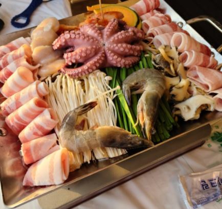 - 메뉴 : 돌문어해물삼합(39,000원) / 딱새우 회(30,000원)