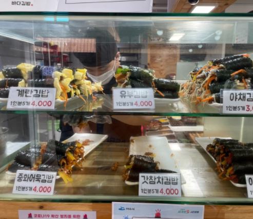 - 메뉴 : 중화어묵김밥(4,000원) / 모듬김밥25개(19,000원) / 계란김밥(4,000원)