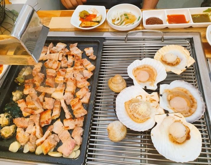 - 메뉴 : Set 1. 고기&조개(34,000원) / 해물라면(10,000원)