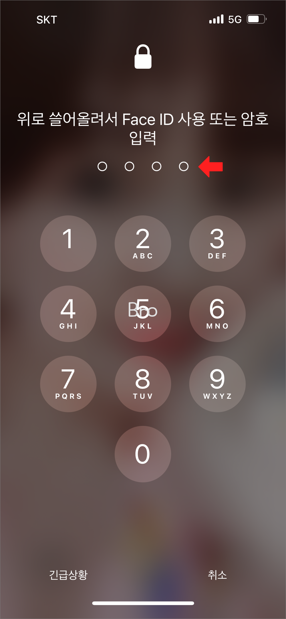 아이폰 전원을 끄신 뒤에 페이스 인증을 하지 않으면 일정시간 뒤에 이렇게 키패드가 뜨면서 4자리로 바뀌어진 모습을 보실 수 있을 거랍니다.