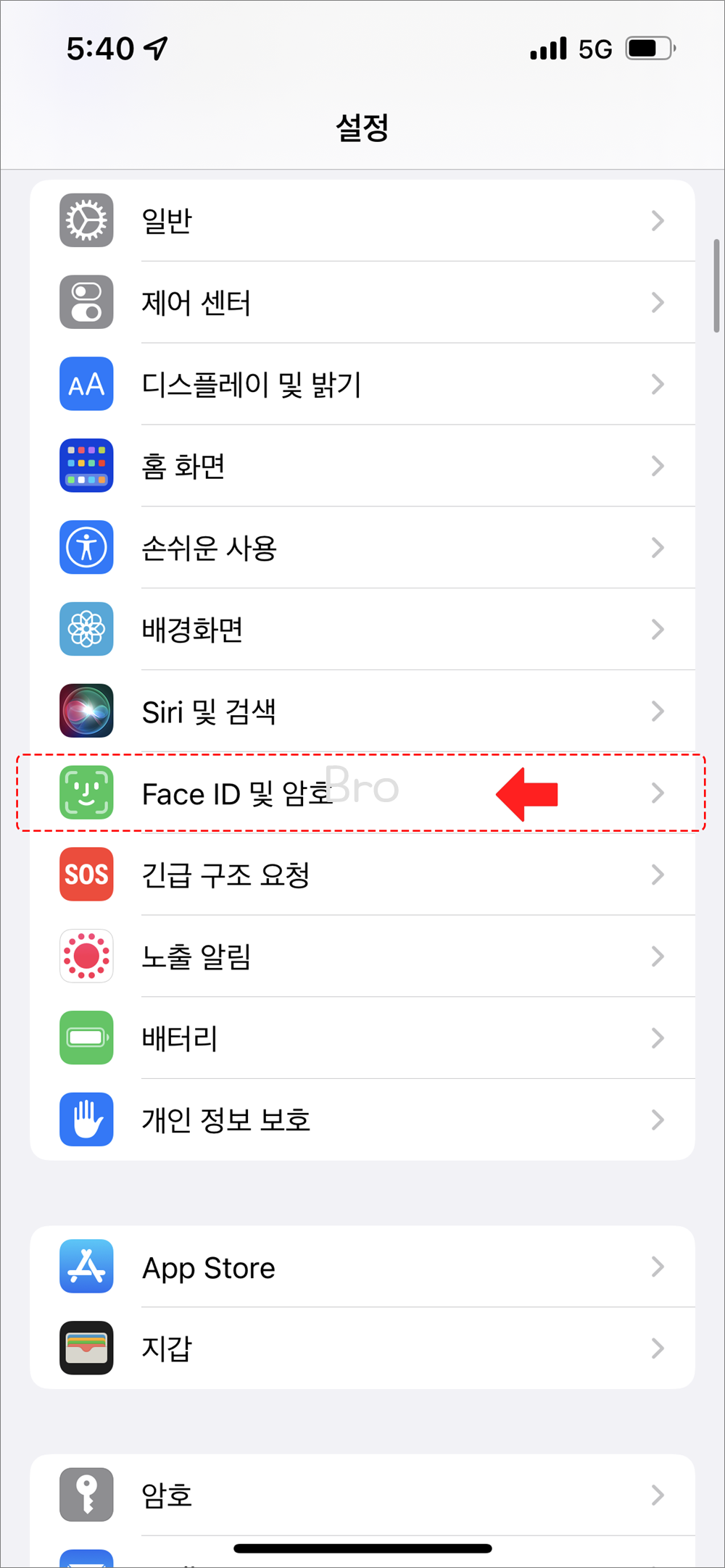 2. 설정 > Face ID 및 암호
