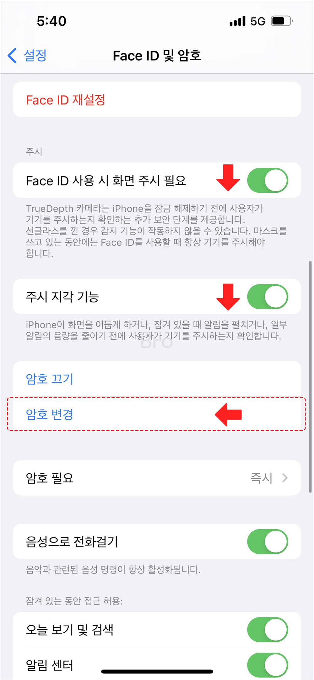 - Face ID 및 암호 > 암호 변경