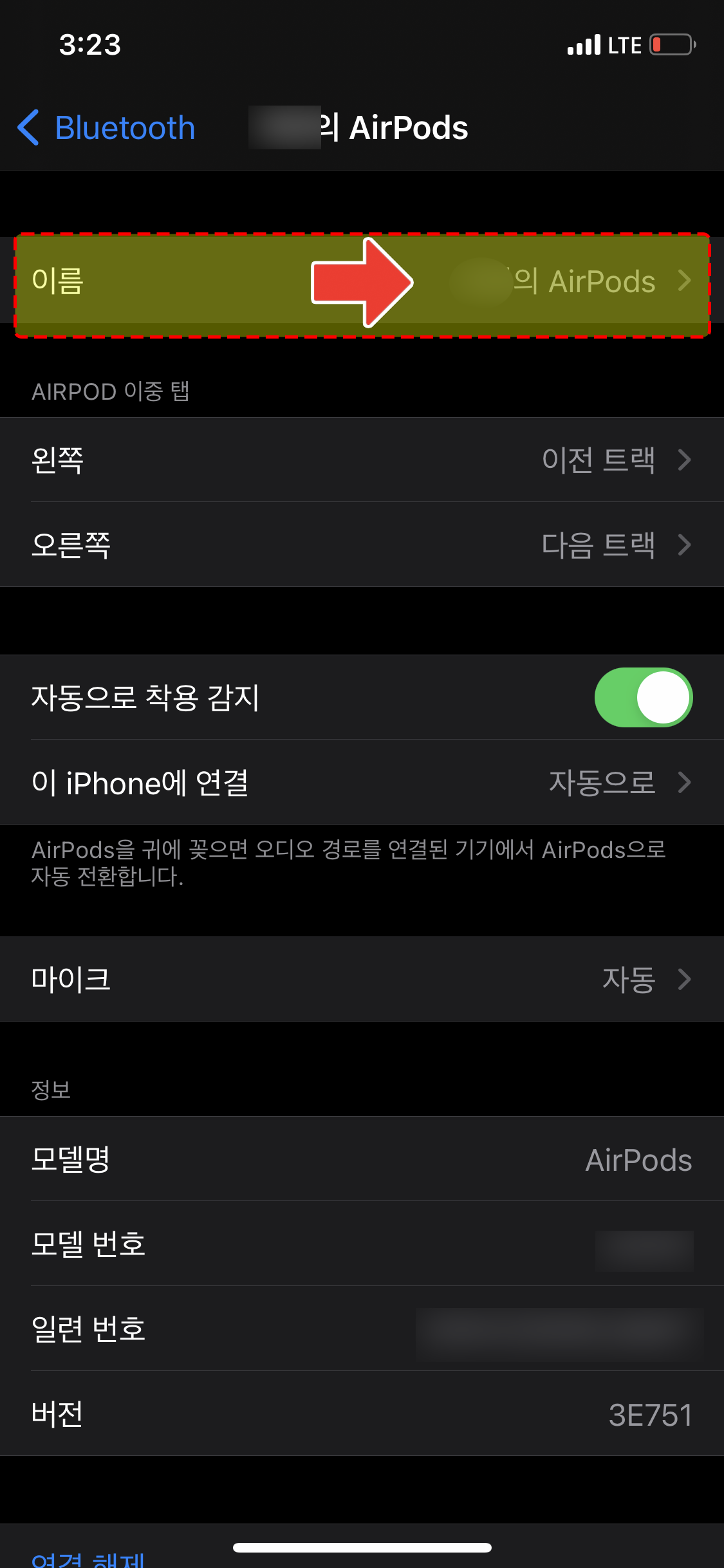 에어팟은 연결하게 되면 상단에 이름을 바꾸기 란이 있고 여러분이 원하시는 에어팟 이름으로 바꾸시면 나만의 특별한 이름을 가진 에어팟을 가지게 될 거랍니다.